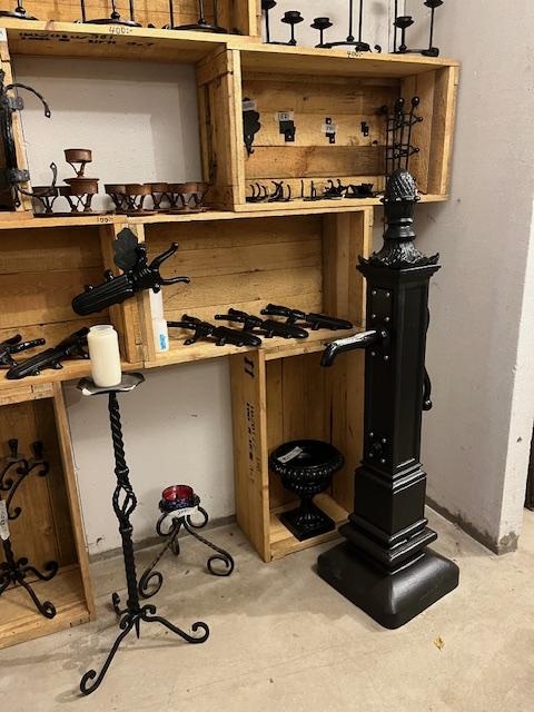 Owe lämnade efter sig mycket färdigproducerat konstsmide, allt från bänkar, lampor, gat/trädgårdslyktor till vinställ och ljusstakar.